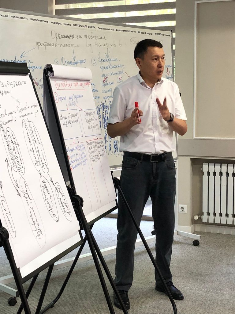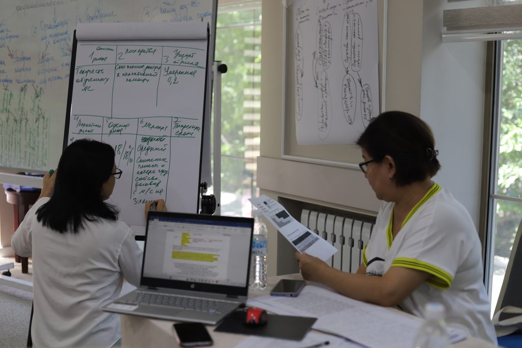 В Бишкеке 18-19 июля прошел курс «Инструменты развития проектного управления» в рамках мероприятий по повышению квалификации для членов Правления Ассоциации руководителей организаций здравоохранения КР (АРОЗ) и представителей партнерских организаций при поддержке Проекта АОЗ — Фаза II / «Укрепление системы управления здравоохранением».